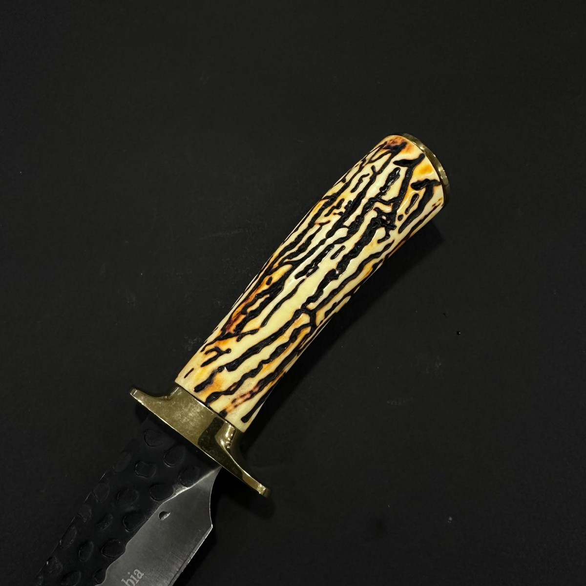 Cuțit fix camping 31 cm, lamă 15 cm fier forjat, mâner corn cerb – Cod: COL-RST31CB