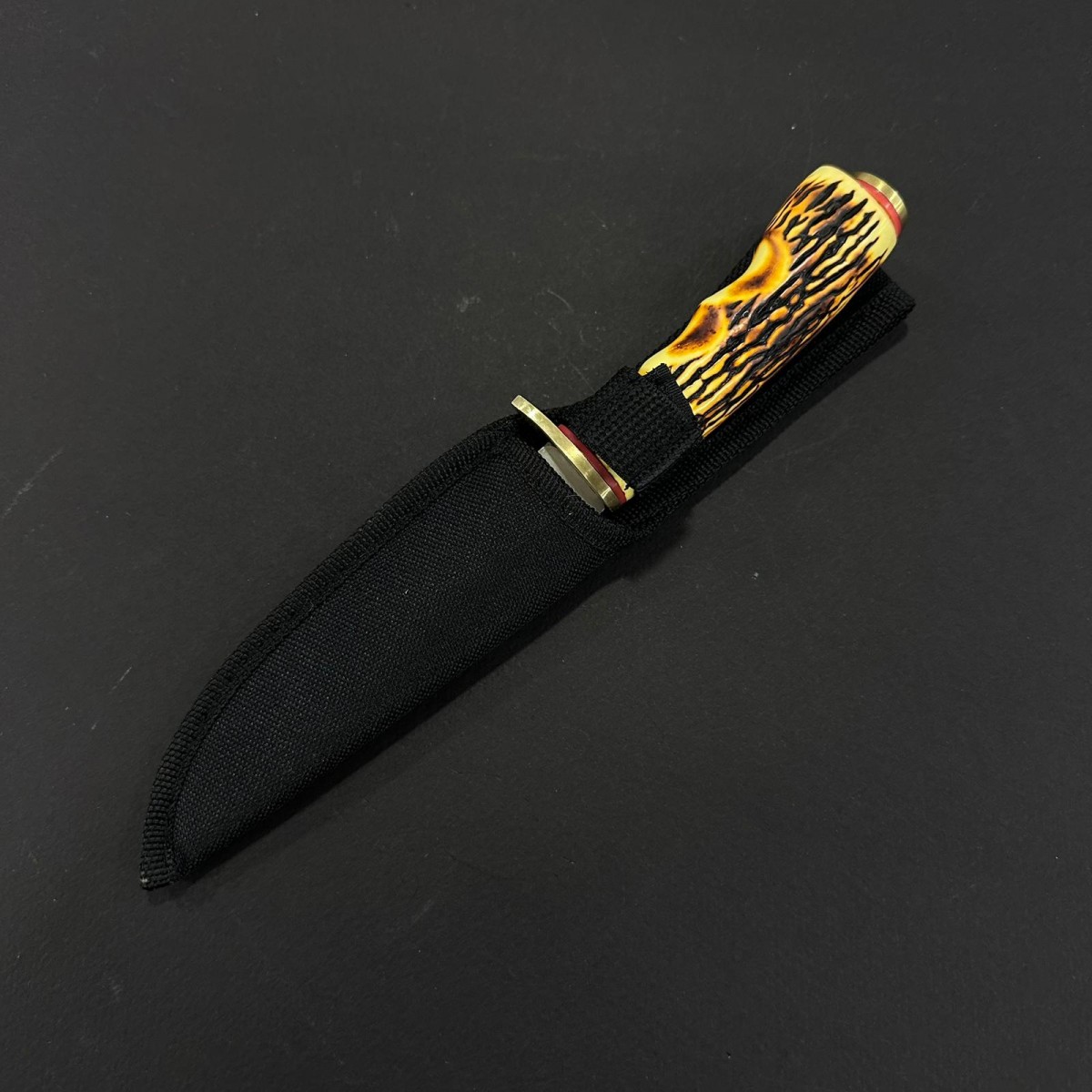Cuțit fix compact și elegant, ideal pentru camping, bushcraft, drumeții și activități outdoor. Lama din oțel inoxidabil oferă ascuțime durabilă, rezistență la rugină și tăiere precisă, cu profil ușor curbat pentru control excelent. Mânerul ergonomic din corn cerb asigură priză sigură, aspect rustic premium și senzație plăcută în mână. Construcție solidă cu accente metalice – un companion stilat, funcțional și cu personalitate pentru orice aventură în natură.