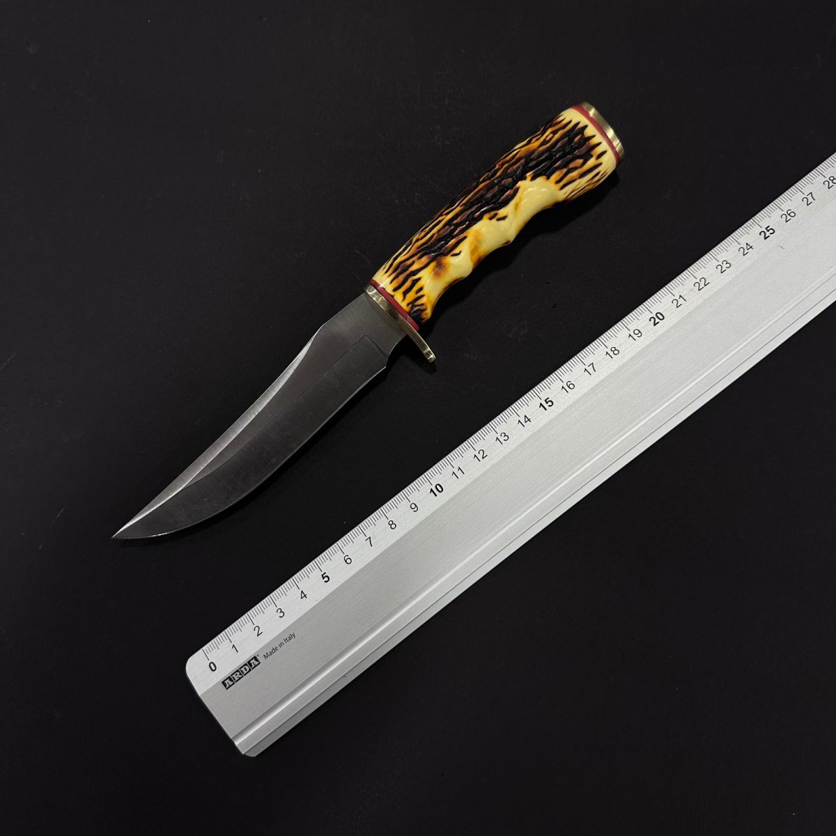 Cuțit fix camping 23 cm, lamă 12 cm oțel inoxidabil, mâner corn cerb – Cod: CUT-RST23CB