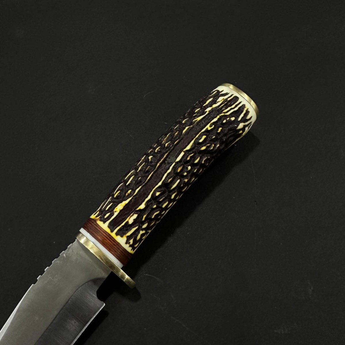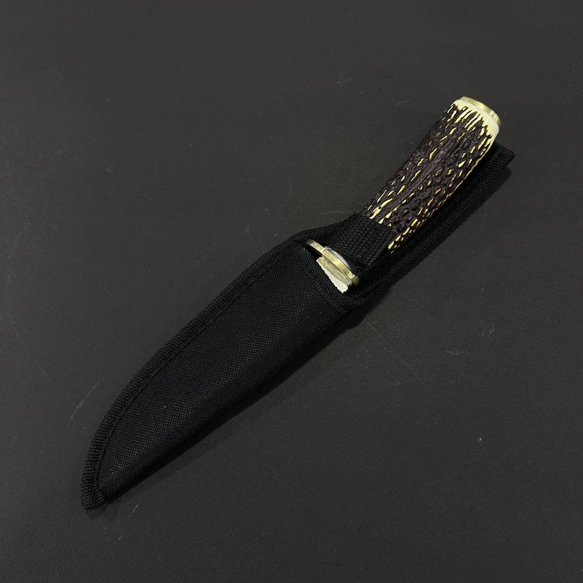 Cuțit fix compact și elegant, ideal pentru camping, bushcraft, drumeții și activități outdoor. Lama din oțel inoxidabil oferă ascuțime durabilă, rezistență la rugină și tăiere precisă, cu profil ușor curbat pentru control excelent. Mânerul ergonomic din corn cerb asigură priză sigură, aspect rustic premium și senzație plăcută în mână. Construcție solidă cu accente metalice – un companion stilat, funcțional și cu personalitate pentru orice aventură în natură.
