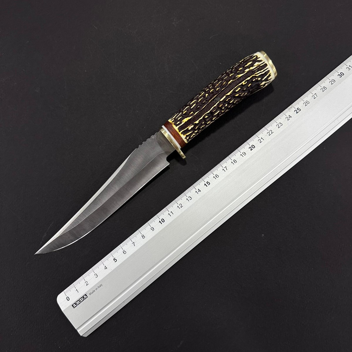 Cuțit fix camping 26 cm, lamă 14 cm oțel inoxidabil, mâner corn cerb – Cod: CUT-RST26CB