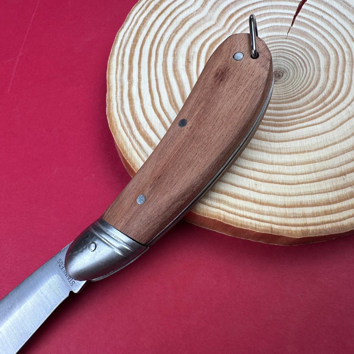 Mini cuțit de buzunar din lemn de trandafir – Lama inox, ideal hobby & camping.Cuțit mic, elegan..