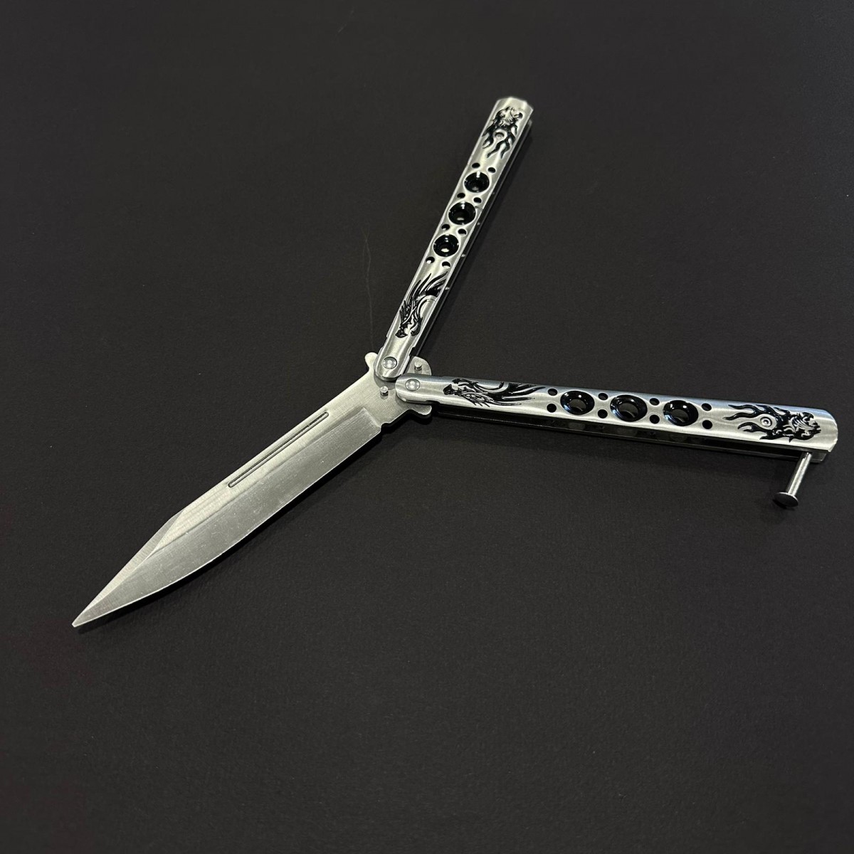 Briceag Balisong Silver 22cm, lama otel inox, maner stil fluture/butterfly, BAL-22FSLV