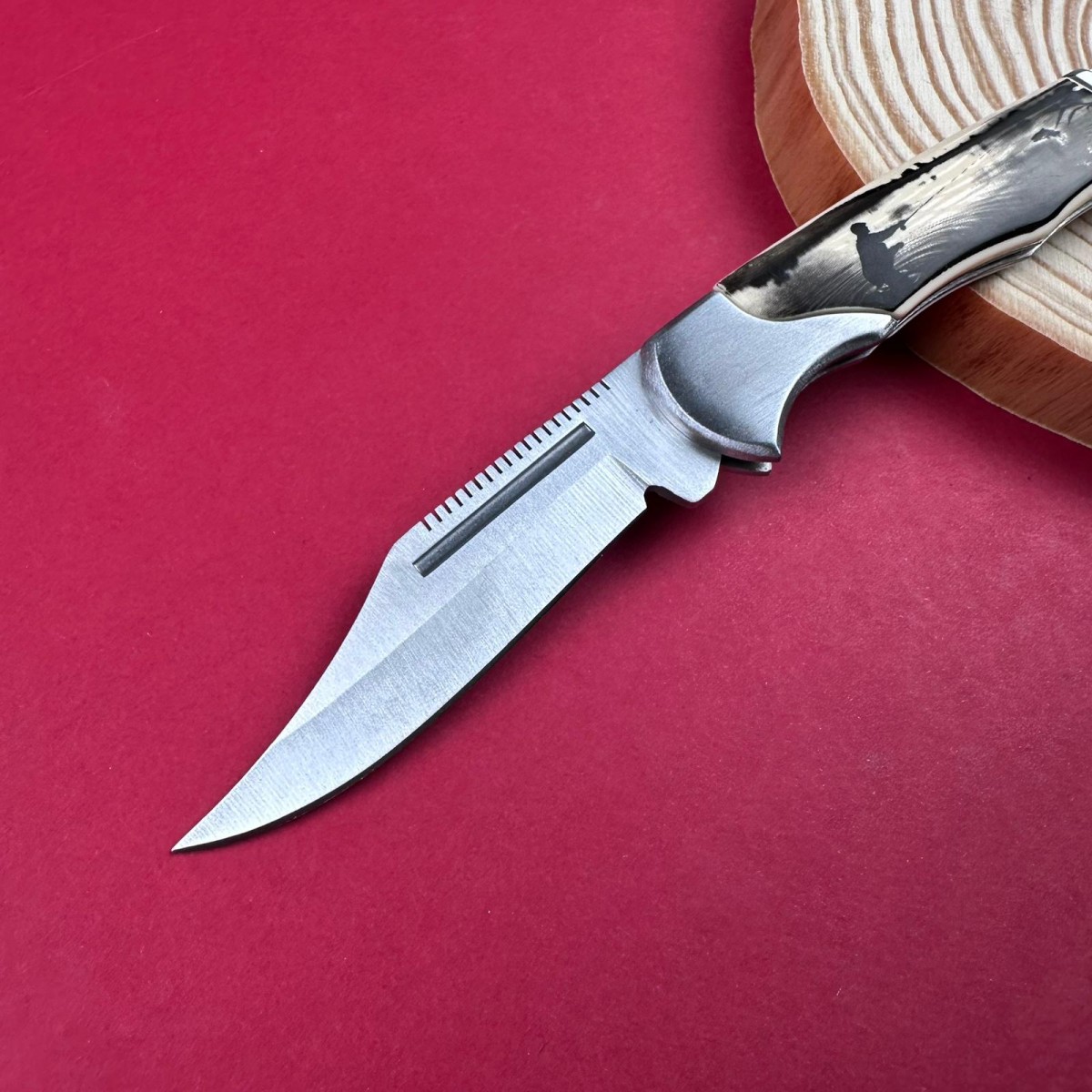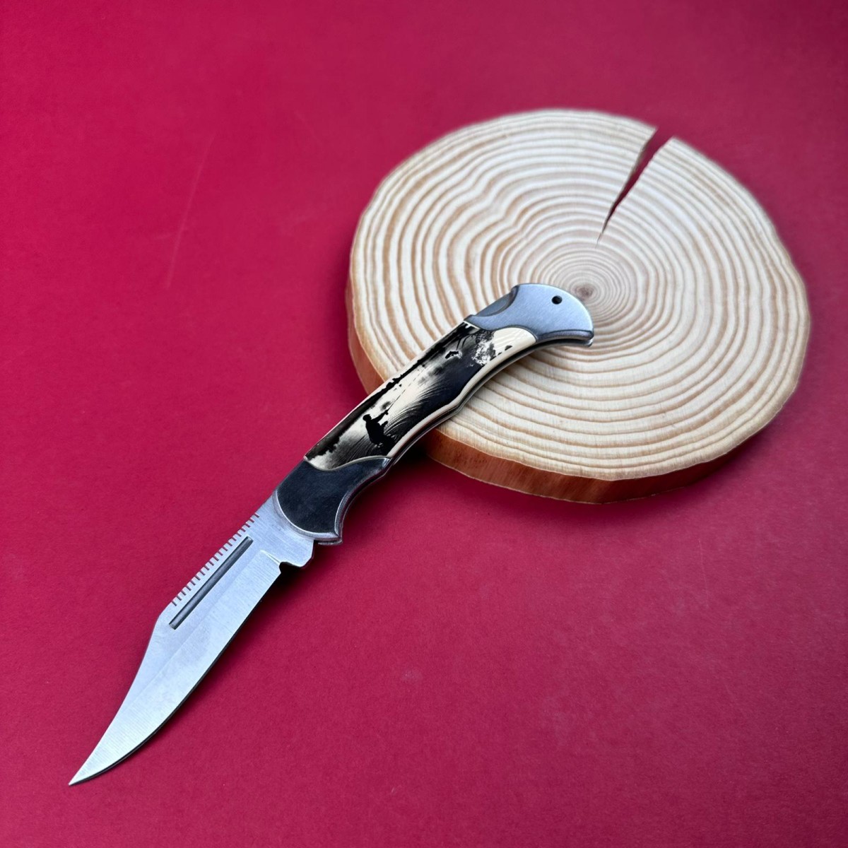 Cuțit pliabil compact și estetic, perfect pentru camping, drumeții, pescuit recreativ, bushcraft ușor sau EDC zilnic. Designul premium vine de la mânerul cu inserție artistică (scenă cu pescar pe râu/apus), combinat cu finisajul inox al lamei și accentele metalice. Este un briceag discret, ușor de purtat în buzunar, dar suficient de versatil pentru task-uri outdoor ușoare-medii, cu un look deosebit care îl face și un cadou frumos pentru pasionații de natură și pescuit.