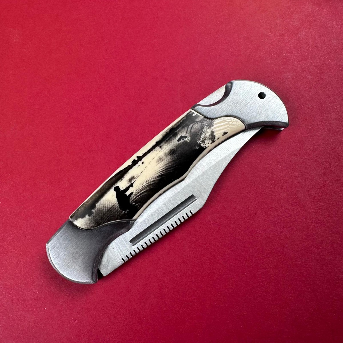 Un briceag elegant și practic – inserția cu pescar adaugă un touch personal și artistic, făcându-l să iasă în evidență față de modelele standard. Lama inox ține ascuțimea bine, iar dimensiunile compacte îl fac perfect pentru buzunar sau rucsac mic. Arată premium fără a fi exagerat de tactic.