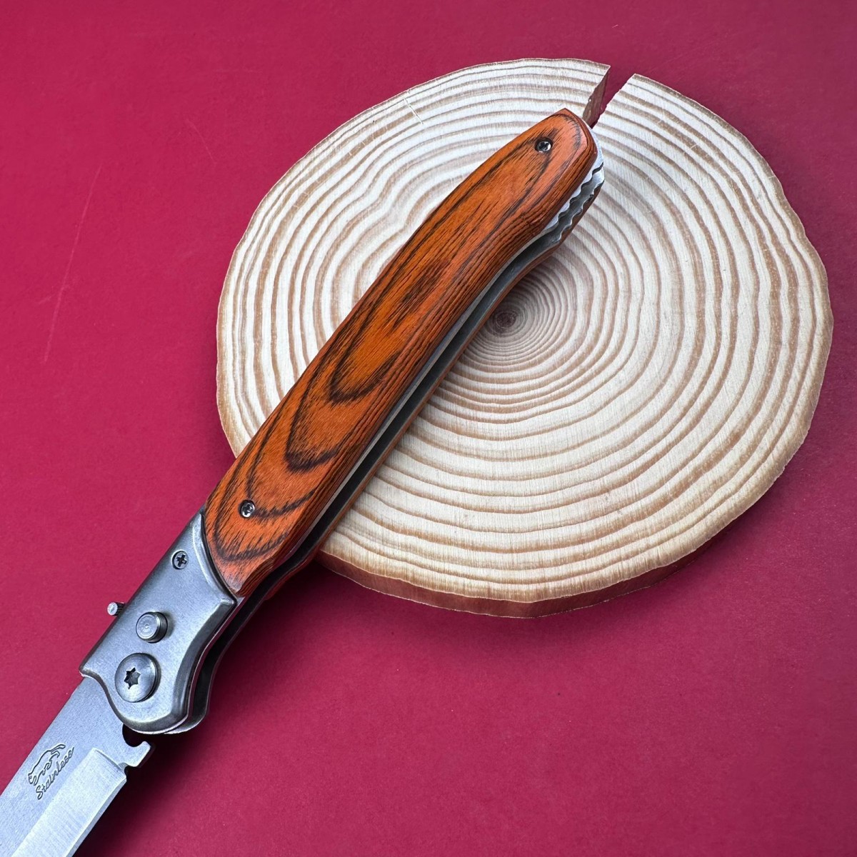 Cutit camping tip Briceag 27cm, lama otel inox, maner metal+lemn maro, cu husa FR18