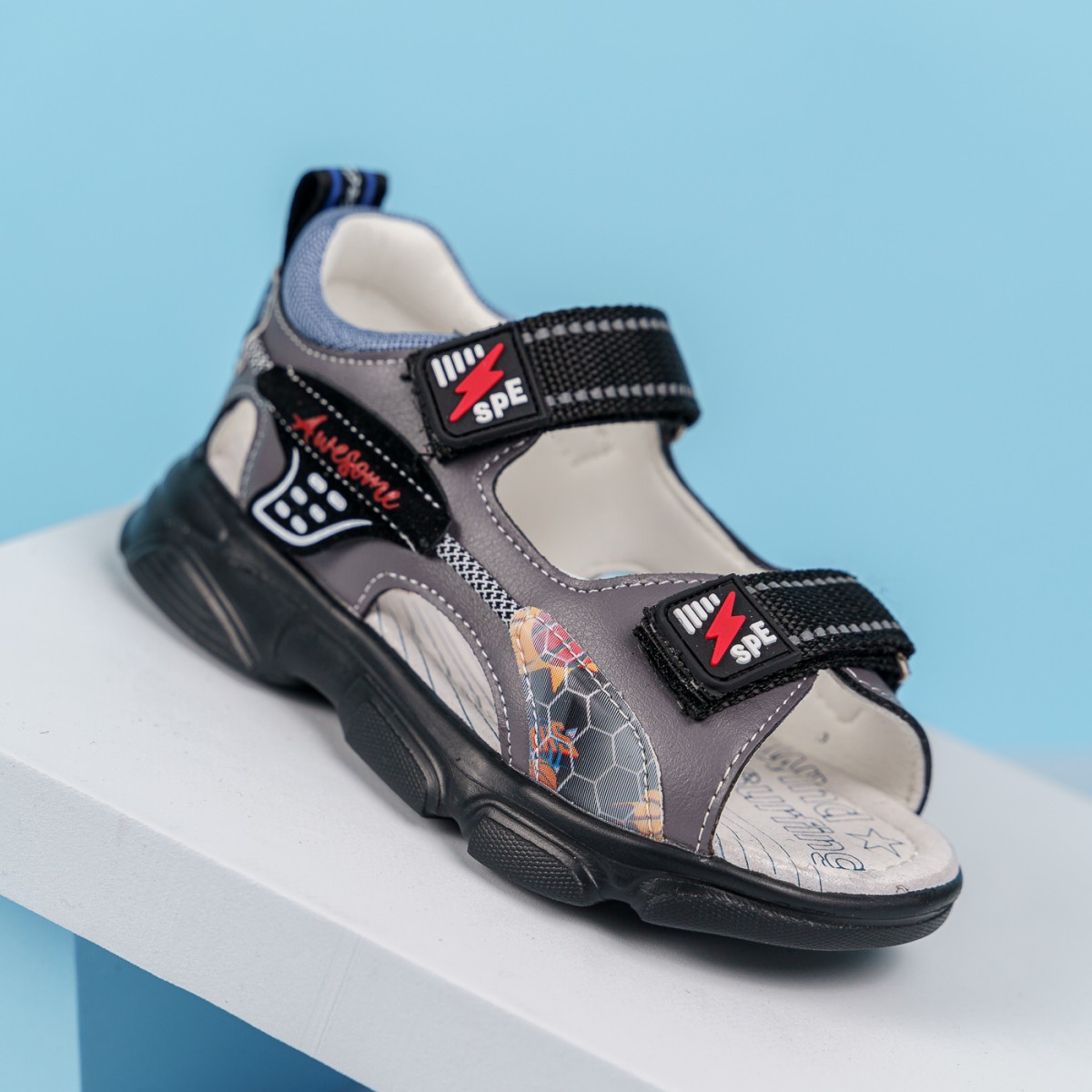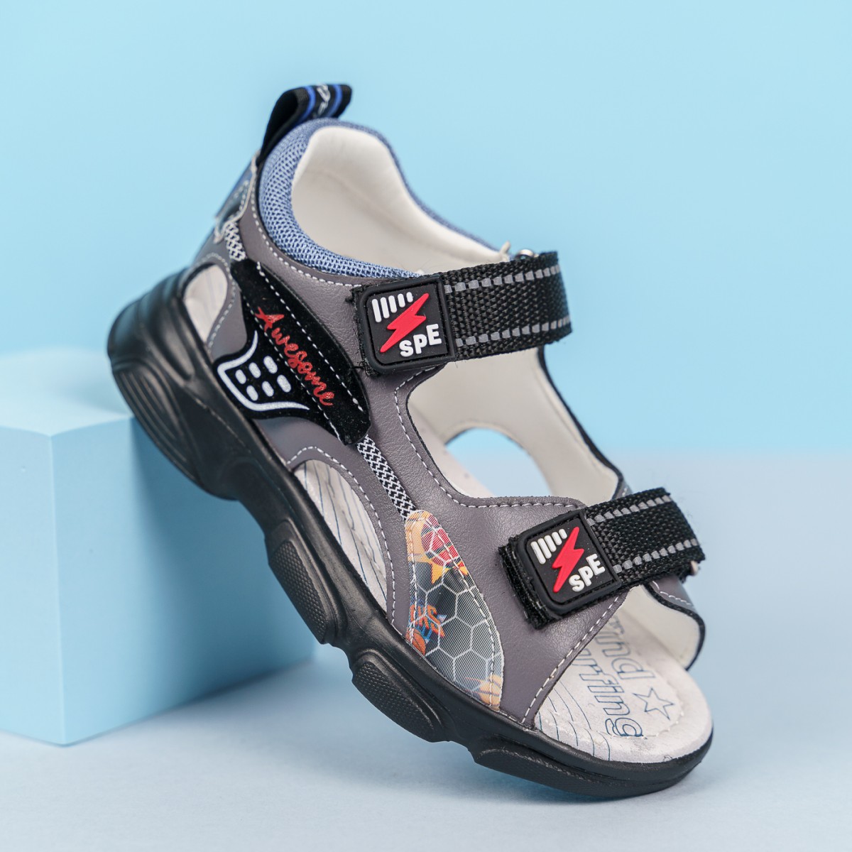 Sandale Actor gri, latime ajustabila