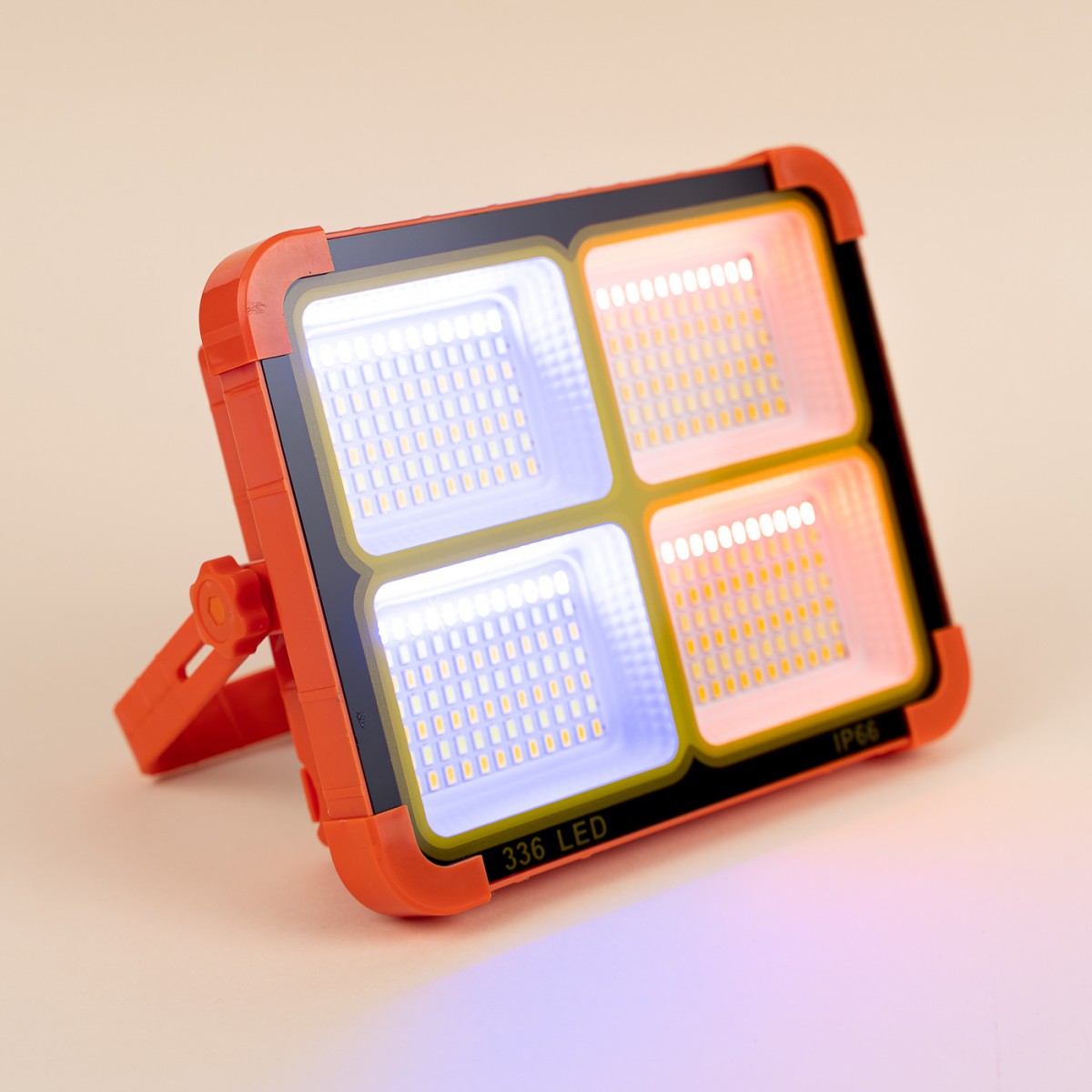 Lampa de lucru D8 cu panou solar 336 LED, 4 cadrane, lumina alb cald si rece, portocaliu