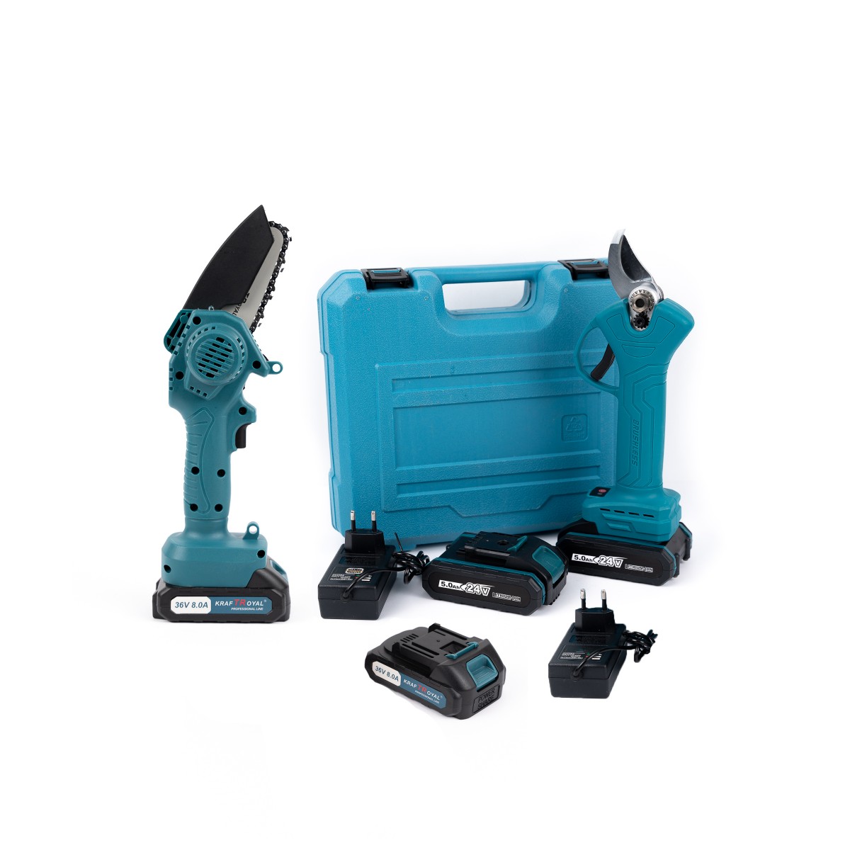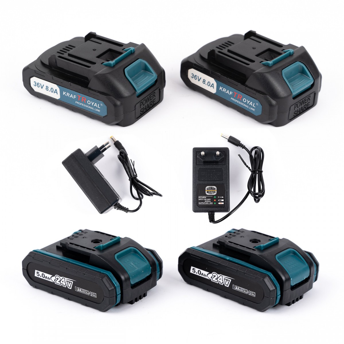 Set Minidrujba KraftRoyal 36V si Foarfeca vita de vie German Meister 24V, 4 acumulatori, 2 incarcatoare