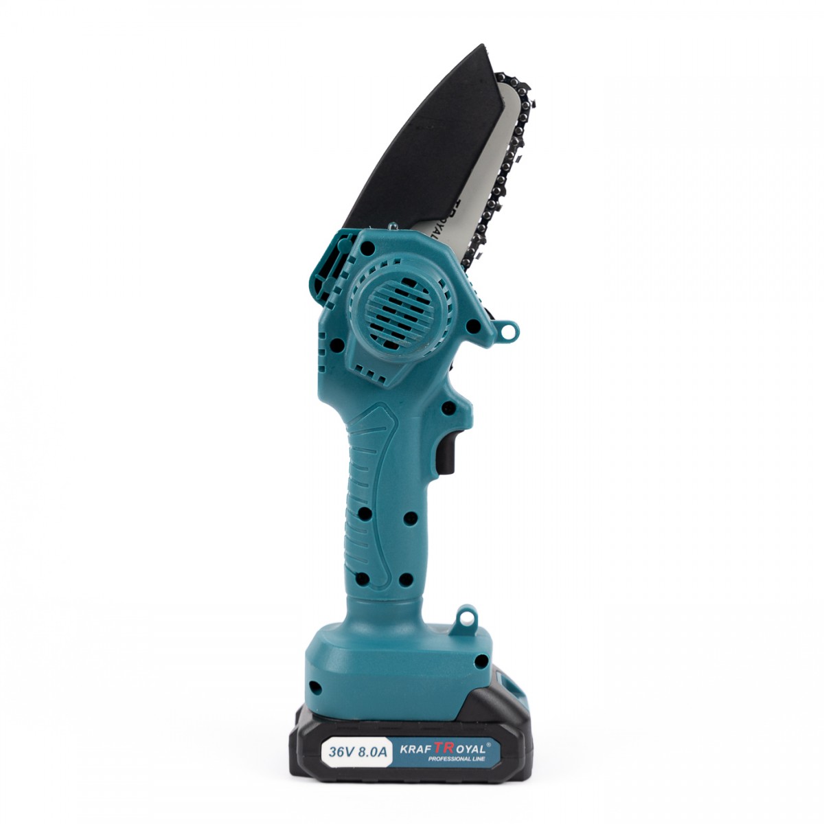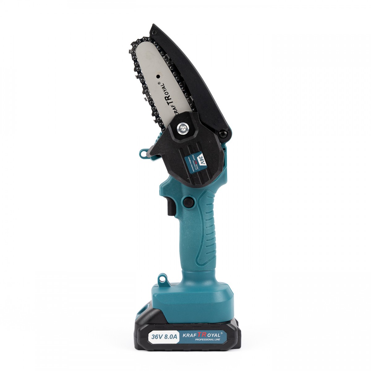Minidrujba KraftRoyal 36V este un instrument puternic si eficient, prevazut cu doi acumulatori de 36V si 8Ah si un incarcator rapid. Acest lucru permite utilizarea fierastraului fara a fi nevoie de alimentare prin cablu, oferind libertate de miscare si usurinta in utilizare.
