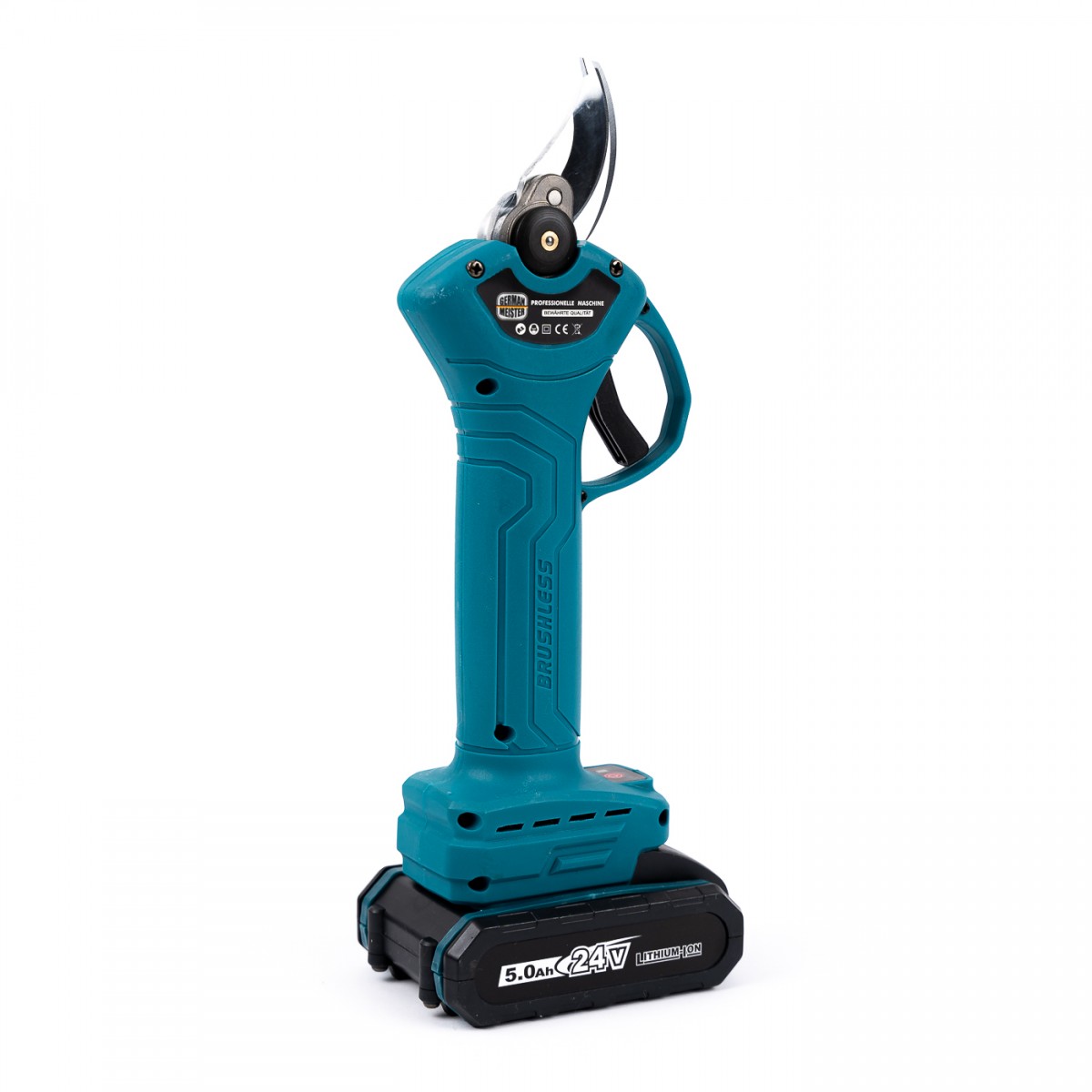 Foarfeca vita de vie si crengi German Meister este o unealta electrica de inalta calitate, alimentata de un acumulator de 24V. Aceasta este ideala pentru taierea ramurilor si a tufelor din gradina sau din vii. Foarfeca vita de vie dispune de lame puternice, care pot taia cu usurinta ramurile mai groase. In plus, designul ergonomic si compact al foarfecii vita de vie face utilizarea sa confortabila si usoara, permitandu-va sa lucrati ore intregi fara sa va obositi.