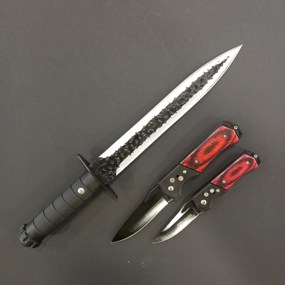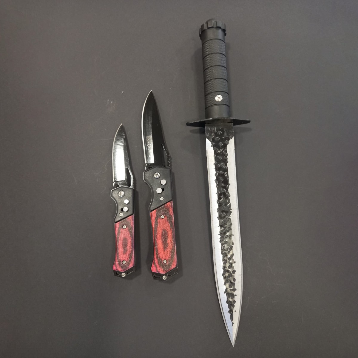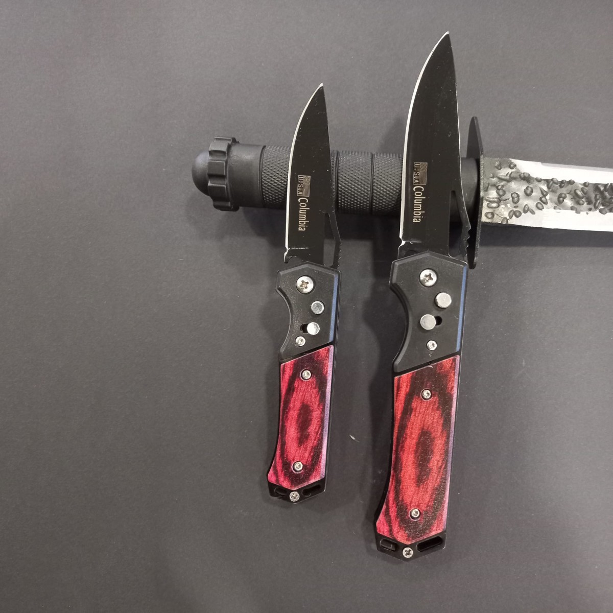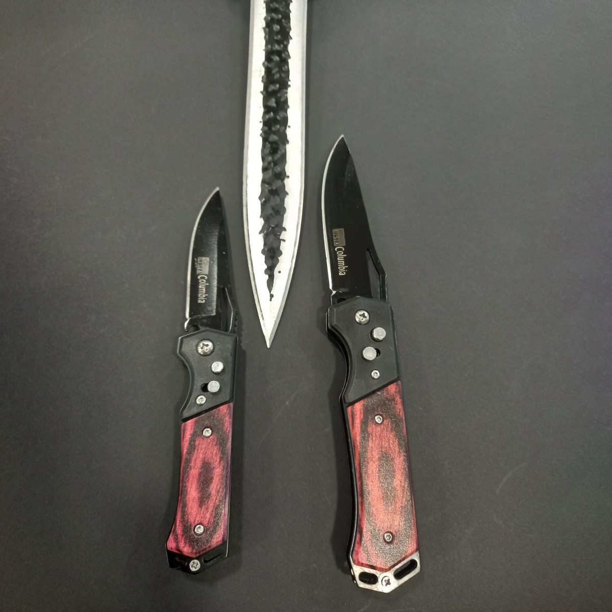 Set hobby 3 piese, Cutit macelarie fier forjat i9FF si 2 Briceage Columbia cu lama otel inox