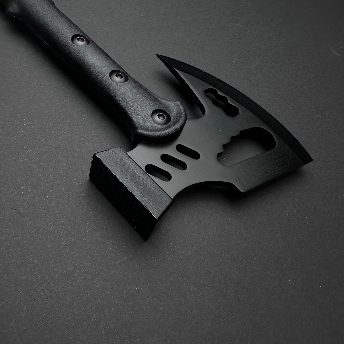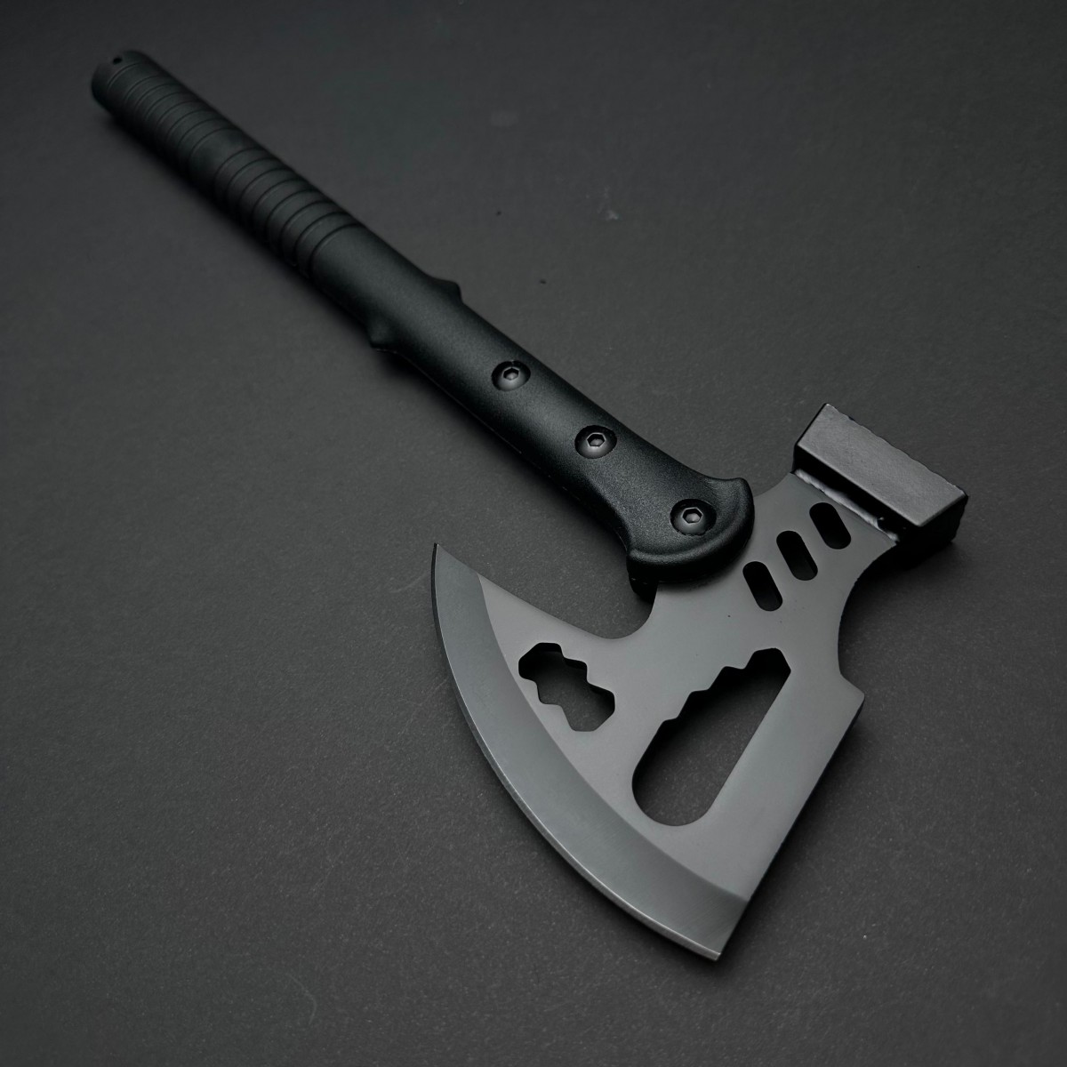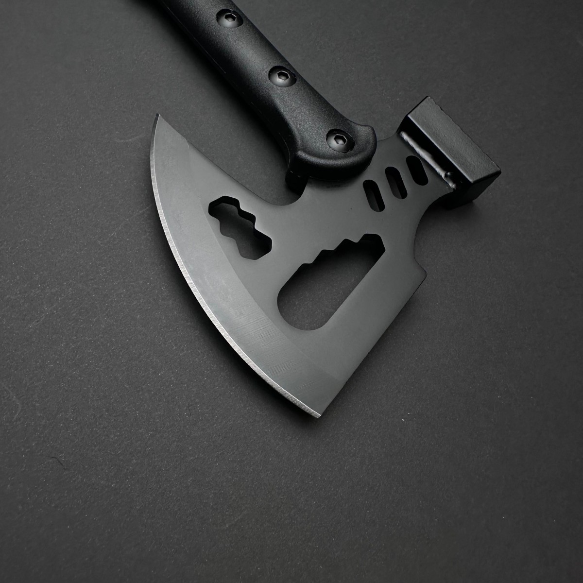 - Capul toporului include funcții auxiliare (ex: chei hexagonale, deschizător, ciocan pe partea opusă)