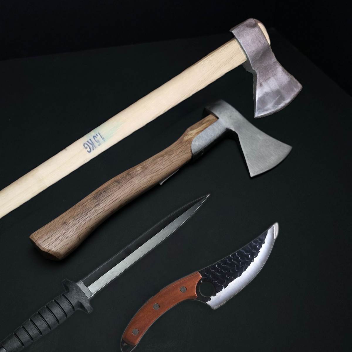 ✔ Multifuncționalitate: Instrumente potrivite pentru diverse sarcini – de la despicarea lemnului la tranșarea sau prelucrarea cărnii.