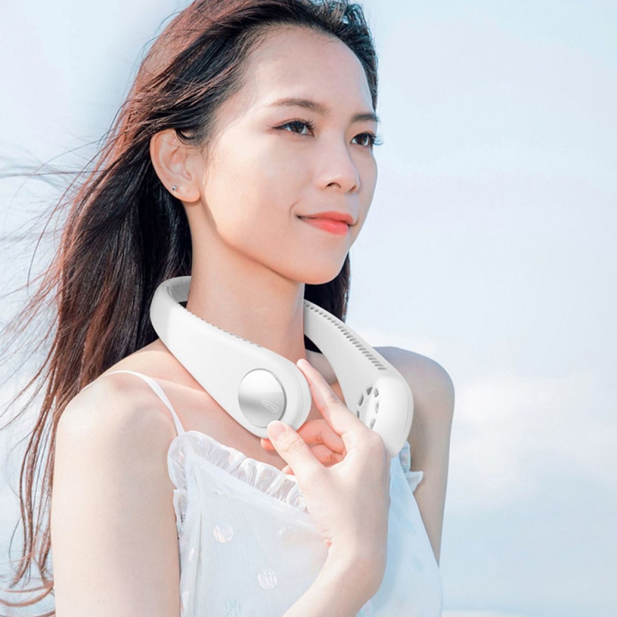 Ventilator pentru gat, Andowl Q-FN72, 3 trepte de viteza, USB, 8h, acumulatori 4000 mA, alb