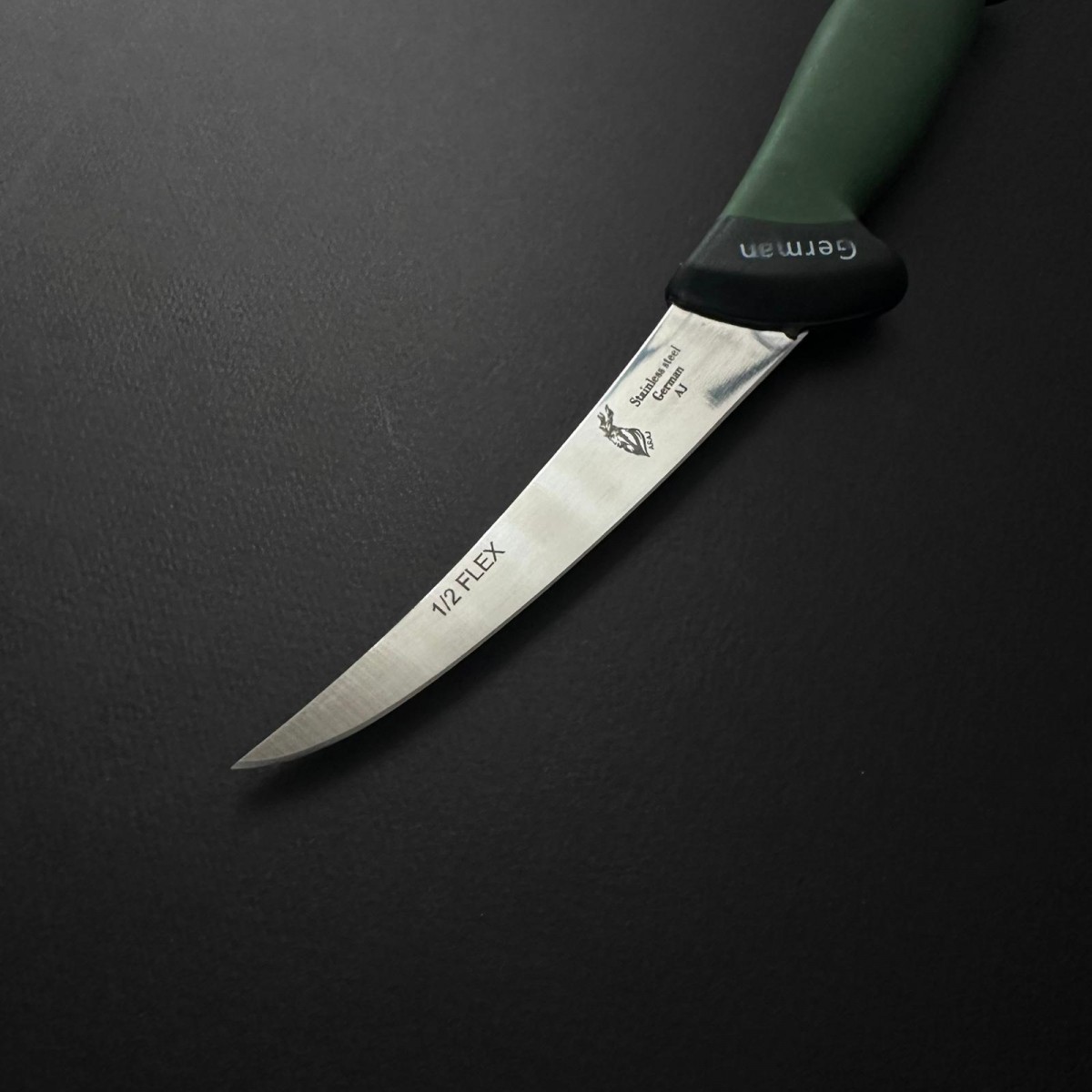 Cuțit măcelărie dezosat 30 cm, lamă cu caneluri oțel inoxidabil 1/2 FLEX, mâner silicon verde – Cod:..