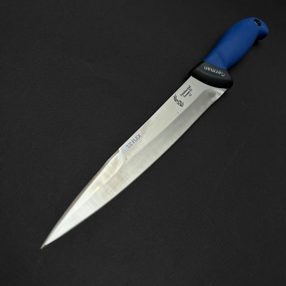 Cuțit măcelărie înjunghiat 38 cm, lamă îngustă oțel inoxidabil 1/2 FLEX cu vârf tăiș dublu, mâner si..